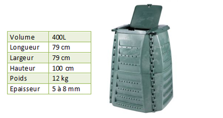 - Composteur distribué : modèle « Thermo-Star » de 400L en polypropylène 100% recyclé et recyclable