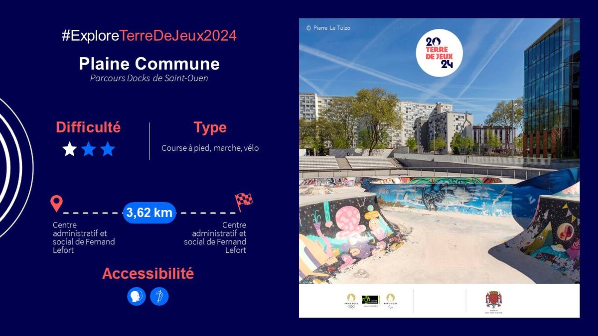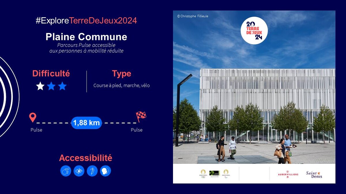 Avec ce parcours accessible aux personnes à mobilité réduite, découvrez une partie du territoire de Plaine Commune directement connectée aux Jeux Olympiques et Paralympiques 2024.
