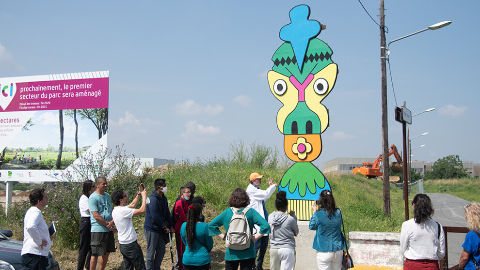 Le résultat ? Un parcours artistique vient de naître dans le quartier invitant à découvrir : des Totems représentant les trois villes « mères porteuses » des Tartres, la ‘‘Borne des trois puissances’’ comme le nombril de ce quartier nouveau-né, ‘‘la Serre’’ composée de vitraux qui représentent les mémoires passées du quartier… Une initiative menée par l’ANPU et Surface Totale, d’après une commande de Plaine Commune, Territoire de la culture et de la création, en lien avec Plaine Commune Développement et les villes de Stains, Saint-Denis et sa commune déléguée Pierrefitte-sur-Seine.