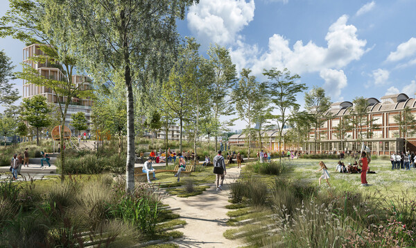 un parc d'environ 1,7 hectares ouvert sur la ville, où 650 arbres seront plantés,
